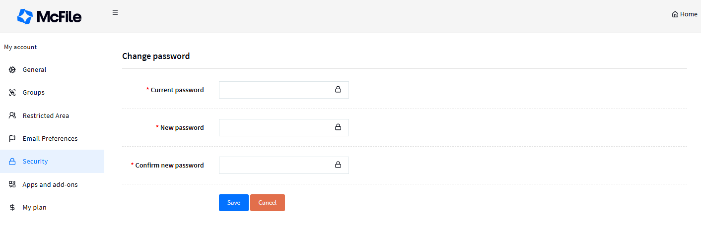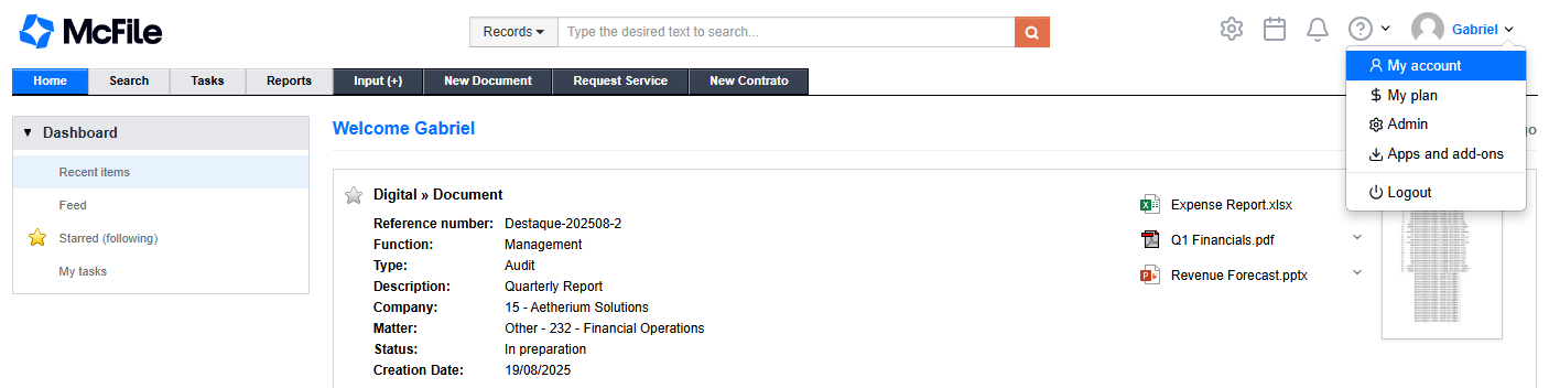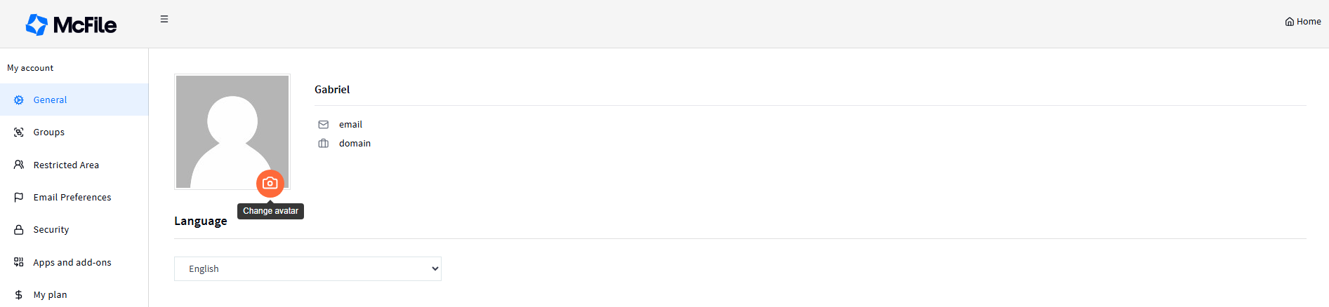 To customize your user profile on McFile, go to the system area My Account. There, you can include an avatar of your preference, create an e-mail signature, or change your password.