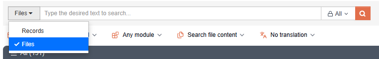 In addition to searching for registered records, you can search directly for Files uploaded to the system records.