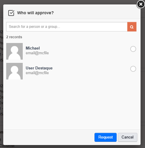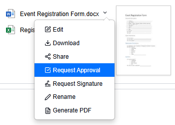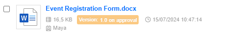 After sending the request, the file will display a badge indicating that it is "on approval".