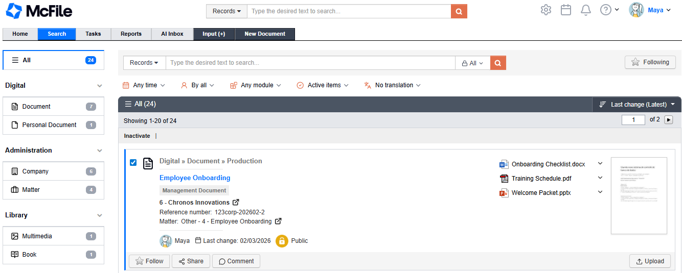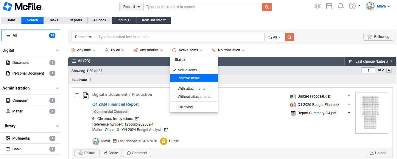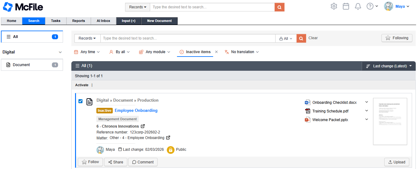 Managing the availability of records on the platform is essential to keeping your database organized and up to date. McFile allows you to change a document's status whenever necessary, ensuring that only relevant items are visible for immediate use.