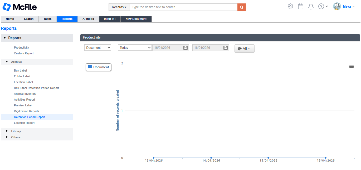 2. Choose the item Retention Period Report.